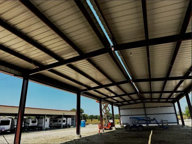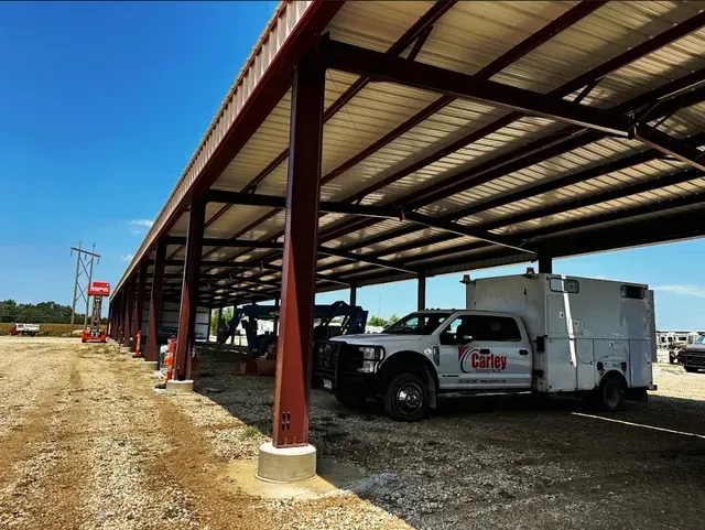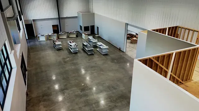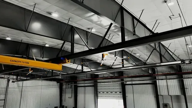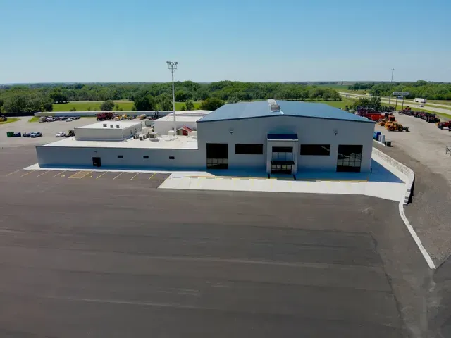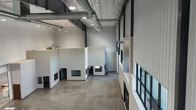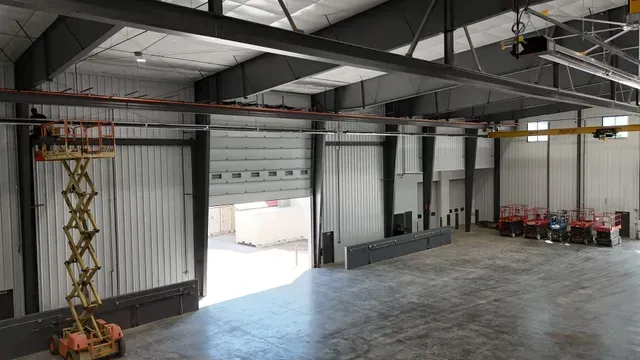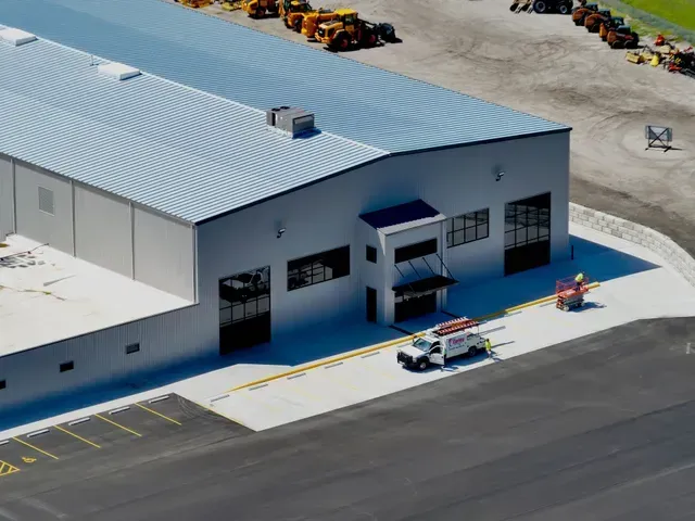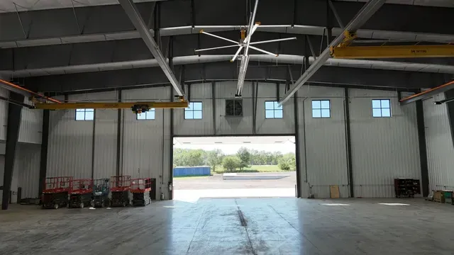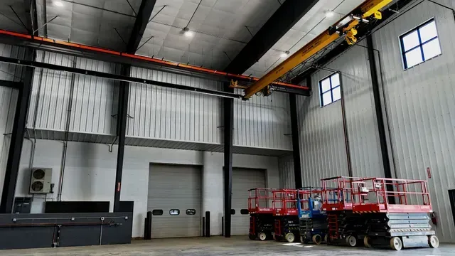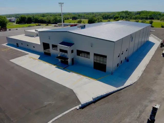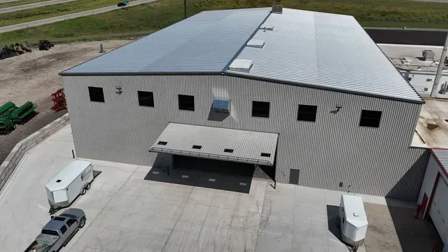 This 25,250-square-foot Kanequip, Inc. facility features a 125-foot clear span, 41-foot-wide overhead door, and 24-gauge standing seam roof. It’s engineered for multiple rooftop units and includes a full-length overhead crane system for heavy-duty operations.