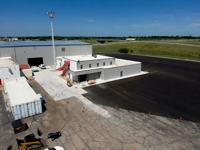 Located in Fayetteville, AR, this 4,960-square-foot facility for Waggers was built by Coyle Enterprises. The single-slope structure features three functional overhangs and parapet walls on both sides, offering a clean, modern look with added architectural dimension.