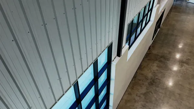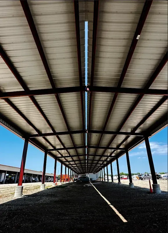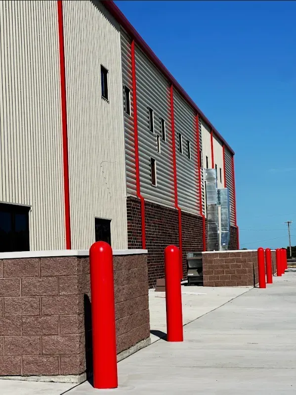 This 10,500-square-foot facility for Shiloh Fence & Gate Supply in Springdale, AR, features a sleek design highlighted by a 5-foot cantilevered canopy over the front entrance. Horizontal windows provide natural light and modern appeal, while standing seam roof panels ensure long-lasting performance and a clean, streamlined look.