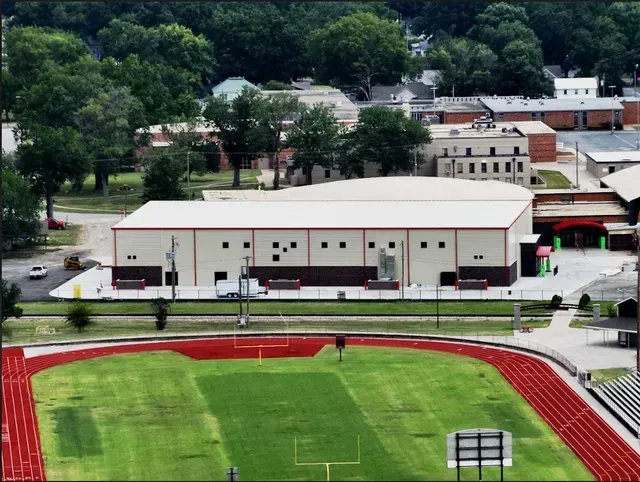 Located in Altamont, KS, the 20,800-square-foot Labette County High School Gym features a 100-foot clear span single-slope design, providing a wide, unobstructed interior ideal for athletic use. The facility is topped with a durable 24-gauge standing seam roof and includes a distinctive bump-out entryway accented by an arched canopy, adding both function and visual appeal.